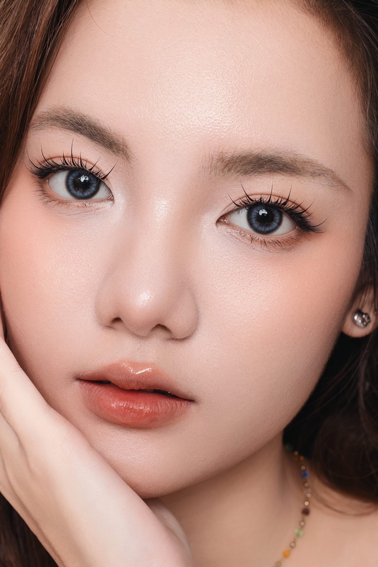 Đặc điểm màu sắc: Không phải xanh dương sáng chói mà là tông xám pha xanh nhẹ, tạo cảm giác như đôi mắt phản chiếu ánh trời hoặc mặt nước. Màu này phù hợp với nhiều tông da, đặc biệt là da trắng hồng và da ngăm khỏe, tạo độ tương phản tự nhiên mà không quá nổi bật.